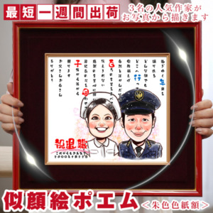 【送料無料・最短1週間出荷】高級感のある朱色の色紙額に、素敵な似顔絵と…