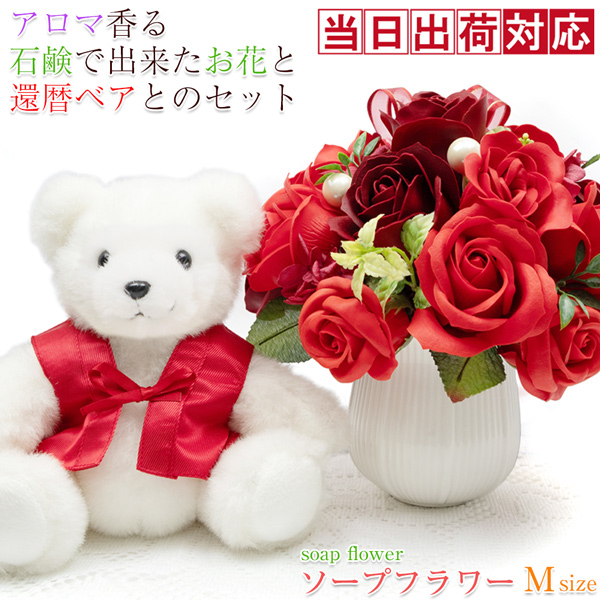 還暦ベアセット ソープフラワー(Mサイズ)<メッセージカード付き>
